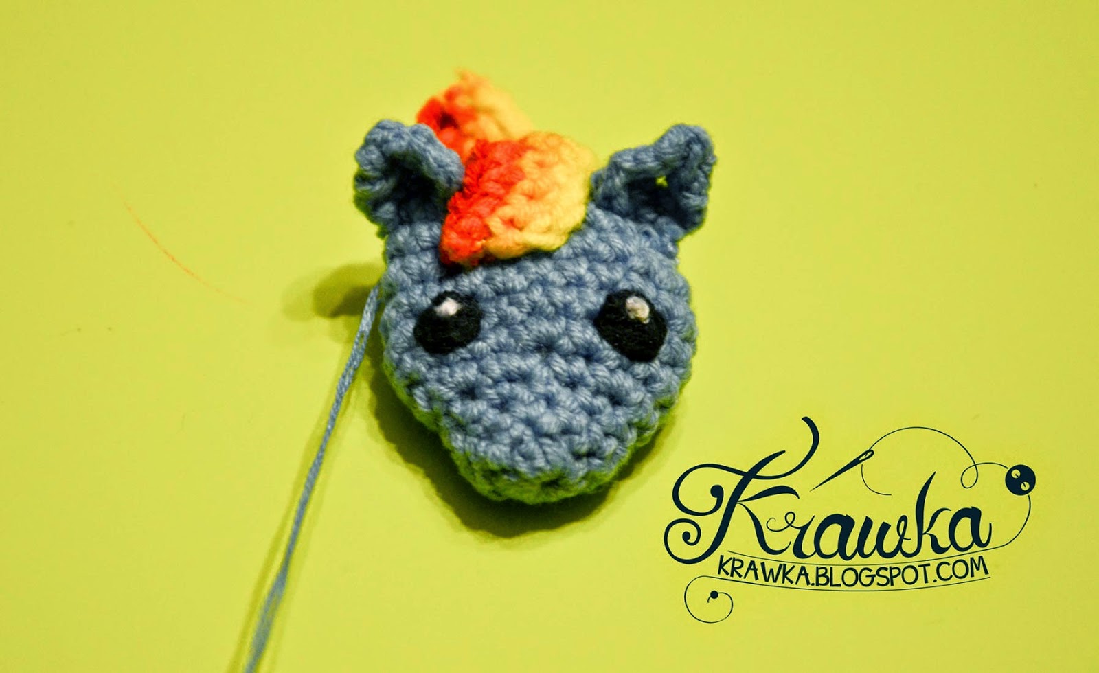 Crochet hair clip - My little Pony, if You know a bit about Pony's ( and I have to tell You I don't) You will get that he is inspired by Rainbow Dash. I chose him because of the vivid rainbow colors which looks great together. I think the hair clip will look great on every hair color and the pony itself is so cute and lovely. I hope You will follow the pattern below and make one pony for yourself and another ones for Your daughters or nieces or mothers or anyone else You can think of.